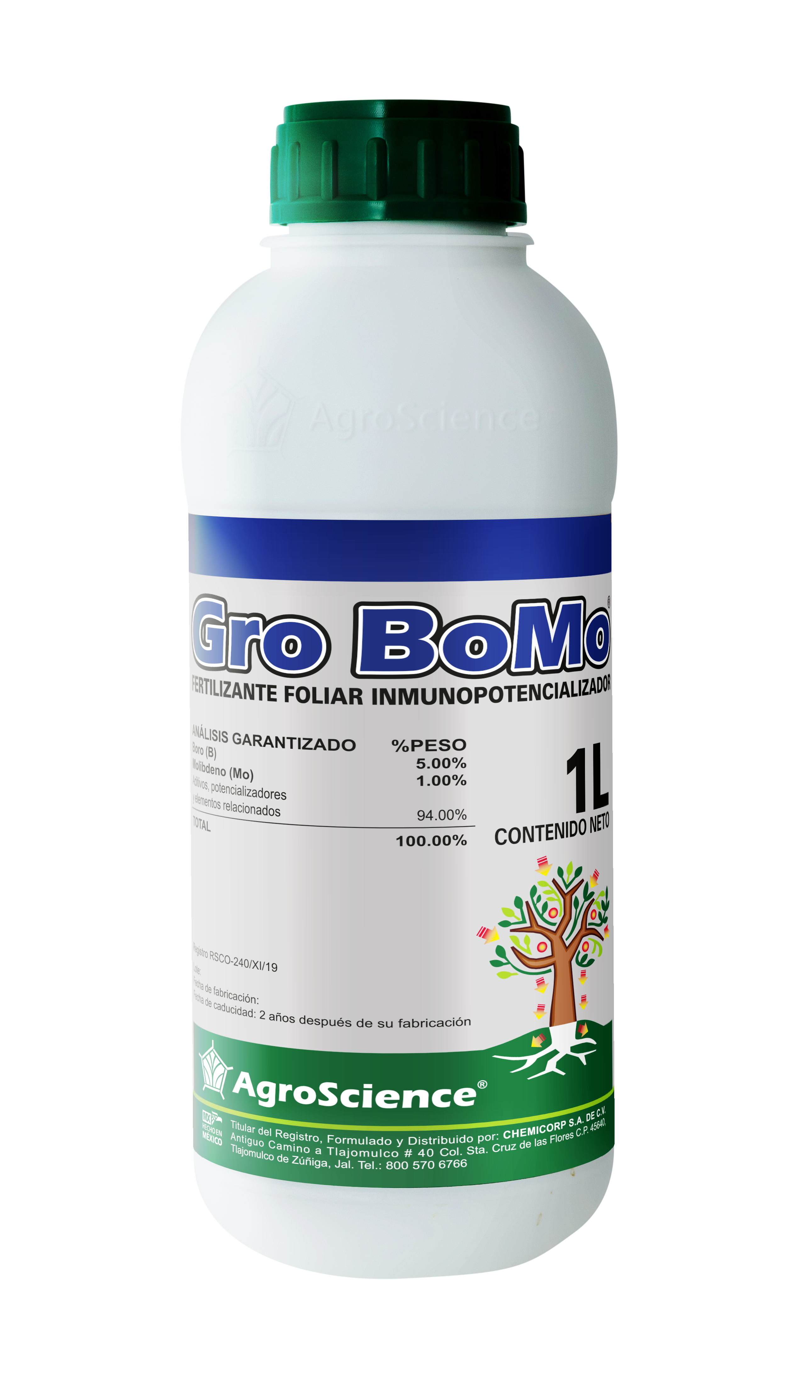 Gro BoMo es un complejo nutricional enriquecido que mejora y facilita la absorción de estos micronutrientes. El complejo participa en la producción de la enzima nitrato reductasa, la cual envía la señal a la planta de detener el periodo vegetativo y de que es momento de comenzar el periodo reproductivo; participa en una correcta división celular, en la calidad de las flores, en la viabilidad del tubo polínico y en garantizar una excelente polinización.