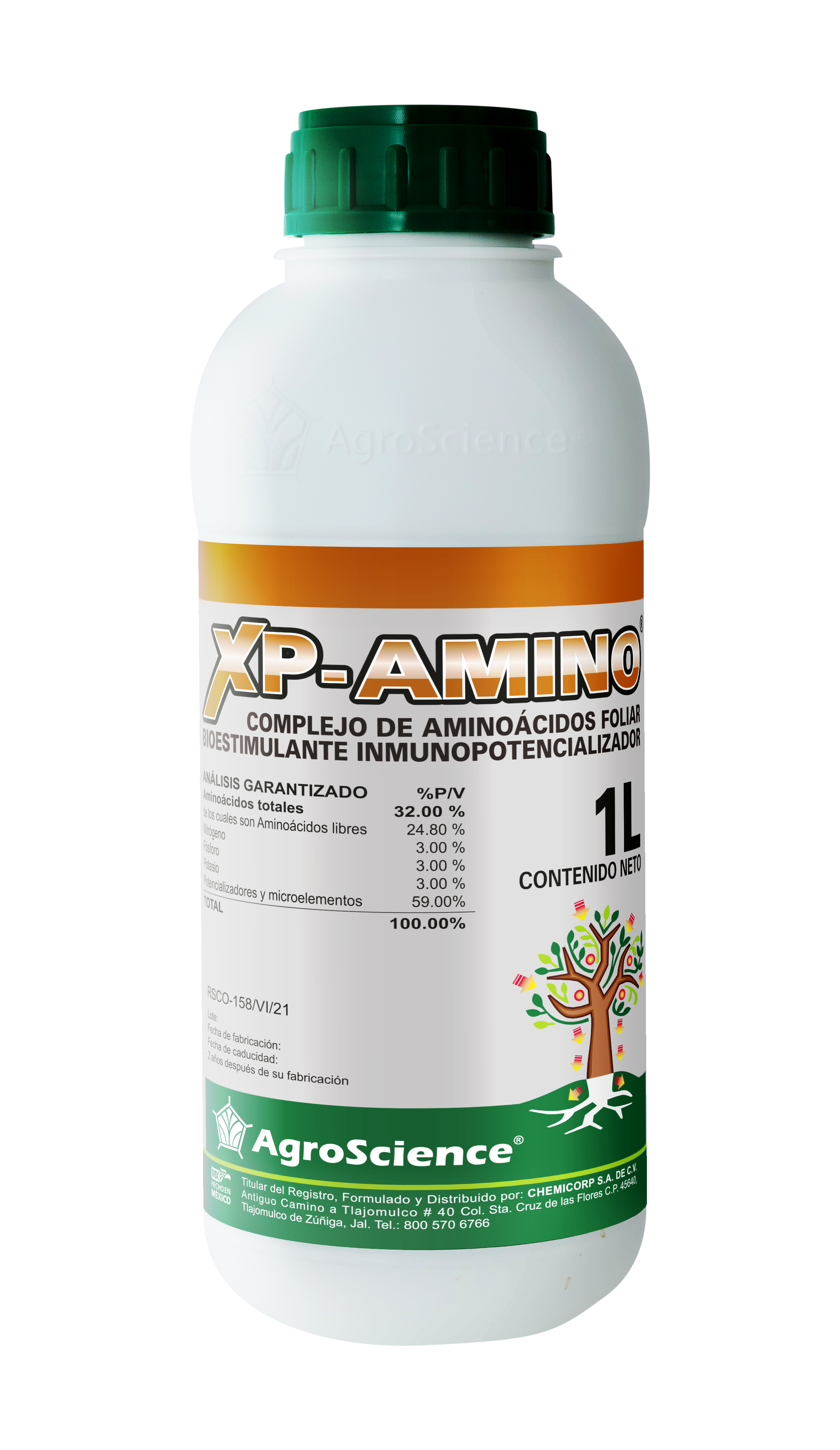 XP-Amino es un complejo constituido por los 20 aminoácidos esenciales para las plantas, proteínas bioasimilables, vitaminas y oligosacáridos que se integran para estimular las funciones fisiológicas y bioquímicas en los cultivos y proporcionar un desarrollo vigoroso.